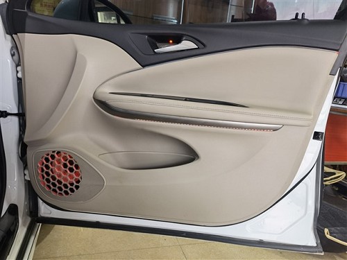 前聲場選擇法國勁浪PS 165 F3亞麻三分頻,A柱倒模安裝高音和中音,傳統(tǒng)8字形式,左右聲場配合形成精準(zhǔn)的發(fā)聲朝向與相位往車廂中部發(fā)聲。中低音采用是門板喇叭位直裝方式,先在門板進(jìn)行雙層俄羅斯StP航空炸彈隔音強(qiáng)化形成箱體效果,提升揚(yáng)聲器發(fā)聲效果,同時加入墊圈和美音圈,讓喇叭久經(jīng)耐用聲音更耐聽。